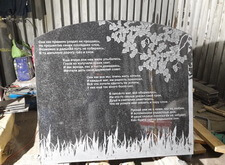 Изготовили необходимые трафареты, выбили надписи. Лицевая сторона памятника отводилась под основную информацию о покойных, на тыльную же была нанесена эпитафия, состоящая из пяти четверостиший. И лицо, и оборот надгробья были украшены гравировкой берёзы.